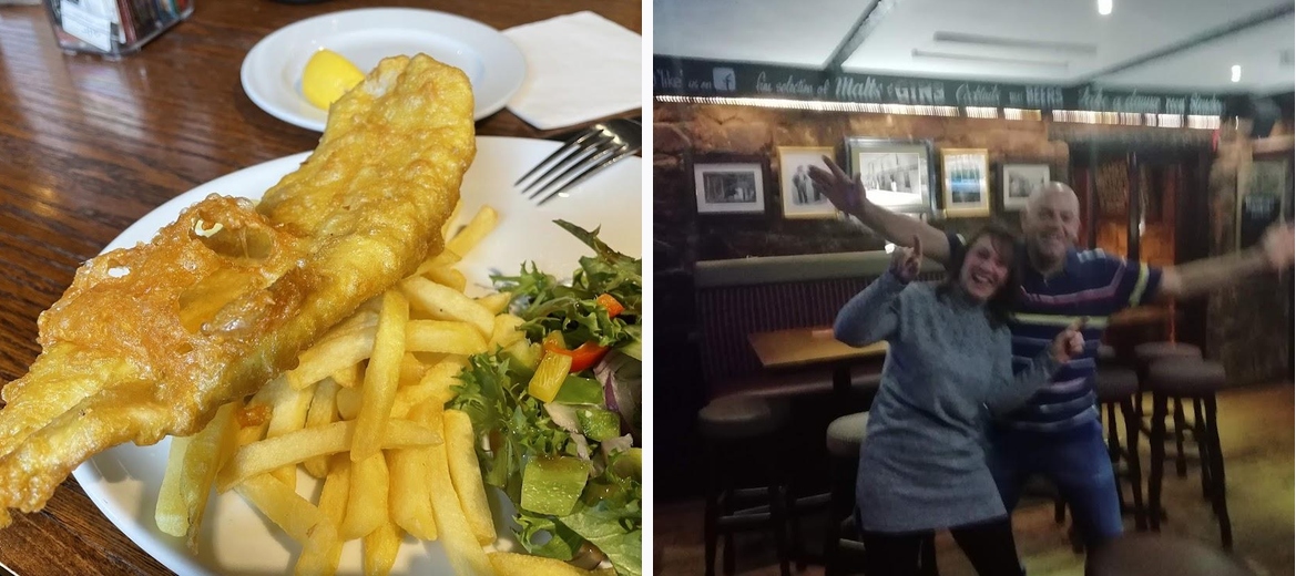 We popped in for a late lunch, wow what a lovely meal we had started with loaded nachos to share loads of cheese and salsa. The wife had scampi chips side salad, I had a lovely large haddock in batter with chips peas coleslaw great fresh food what a meal great value for the money.